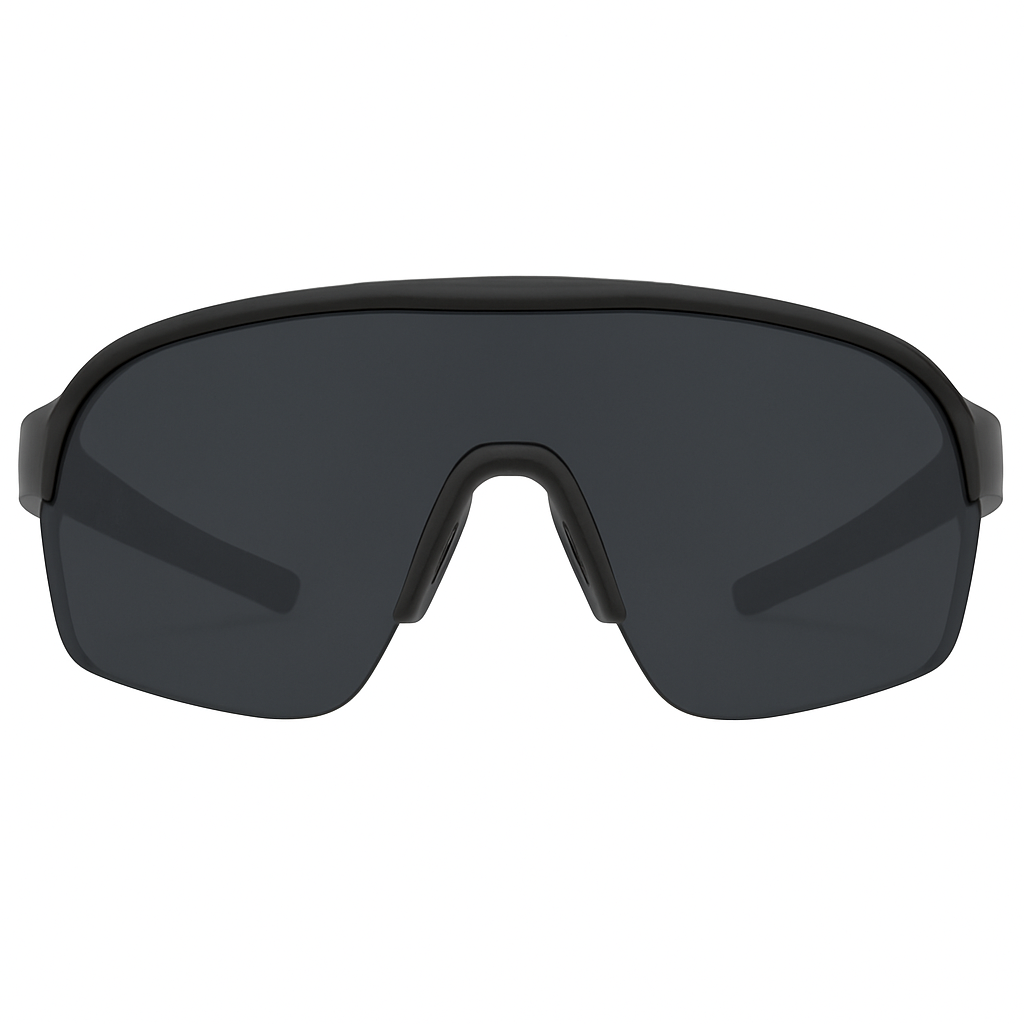 Streamlined Laser Cut Rimless Shield with superior ventilation positioned with aerodynamic angles.