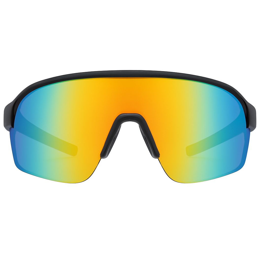 Streamlined Laser Cut Rimless Shield with superior ventilation positioned with aerodynamic angles.